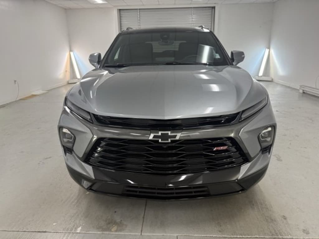 1st & 2nd Row All-Weather Floor Liners (LPO), 3.49 Final Drive Axle Ratio, 4-Wheel Disc Brakes, 6-Way Power Front Passenger Seat Adjuster, 8 Speakers, 8-Way Power Driver Seat Adjuster, ABS brakes, Adaptive Cruise Control, Air Conditioning, Alloy wheels, AM/FM radio: SiriusXM with 360L, Apple CarPlay/Android Auto, Auto High-beam Headlights, Auto-dimming door mirrors, Auto-dimming Rear-View mirror, Automatic temperature control, Black 2-Tone Roof, Bose Premium 8-Speaker Audio System Feature, Brake assist, Bumpers: body-color, Child-Seat-Sensing Airbag, Compass, Delay-off headlights, Driver Confidence II Package, Driver door bin, Driver vanity mirror, Dual front impact airbags, Dual front side impact airbags, Electronic Stability Control, Emergency communication system: OnStar and Chevrolet connected services capable, Enhanced Automatic Emergency Braking, Enhanced Convenience Package, Floor Liner Package (LPO), Four wheel independent suspension, Front anti-roll bar, Front Bucket Seats, Front Center Armrest, Front dual zone A/C, Front reading lights, Fully automatic headlights, Garage door transmitter, HD Surround Vision, Heated door mirrors, Heated Driver & Front Passenger Seats, Heated front seats, Heated Rear Outboard Seating Positions, Heated steering wheel, Illuminated entry, Integrated Cargo Liner (LPO), Knee airbag, Leather Shift Knob, Leather steering wheel, Low tire pressure warning, Memory Settings For Driver Seat & Exterior Mirrors, Navigation System, Occupant sensing airbag, Outside temperature display, Overhead airbag, Overhead console, Panic alarm, Passenger door bin, Passenger vanity mirror, Perforated Leather-Appointed Seat Trim, Power door mirrors, Power Driver Lumbar Control, Power driver seat, Power Liftgate, Power Panoramic Tilt-Sliding Sunroof, Power passenger seat, Power steering, Power Tilt & Telescoping Steering Column, Power windows, Preferred Equipment Group 1RS, Premium audio system: Chevrolet Infotainment 3 Premium, Radio data system, Radio: Chevrolet Infotainment 3 Premium System, Rear anti-roll bar, Rear Camera Mirror, Rear Camera Mirror Washer, Rear reading lights, Rear seat center armrest, Rear window defroster, Rear window wiper, Remote keyless entry, Ride & Handling Suspension, Safety Alert Seat, Security system, SiriusXM w/360L, Speed control, Speed-sensing steering, Split folding rear seat, Spoiler, Steering wheel mounted audio controls, Stop-Start Engine Control System, Tachometer, Telescoping steering wheel, Tilt steering wheel, Traction control, Trip computer, Turn signal indicator mirrors, Variably intermittent wipers, Ventilated Driver & Front Passenger Seats, Voltmeter, Wheels: 20 Technical Gray Aluminum. 2025 Chevrolet Blazer RS RS