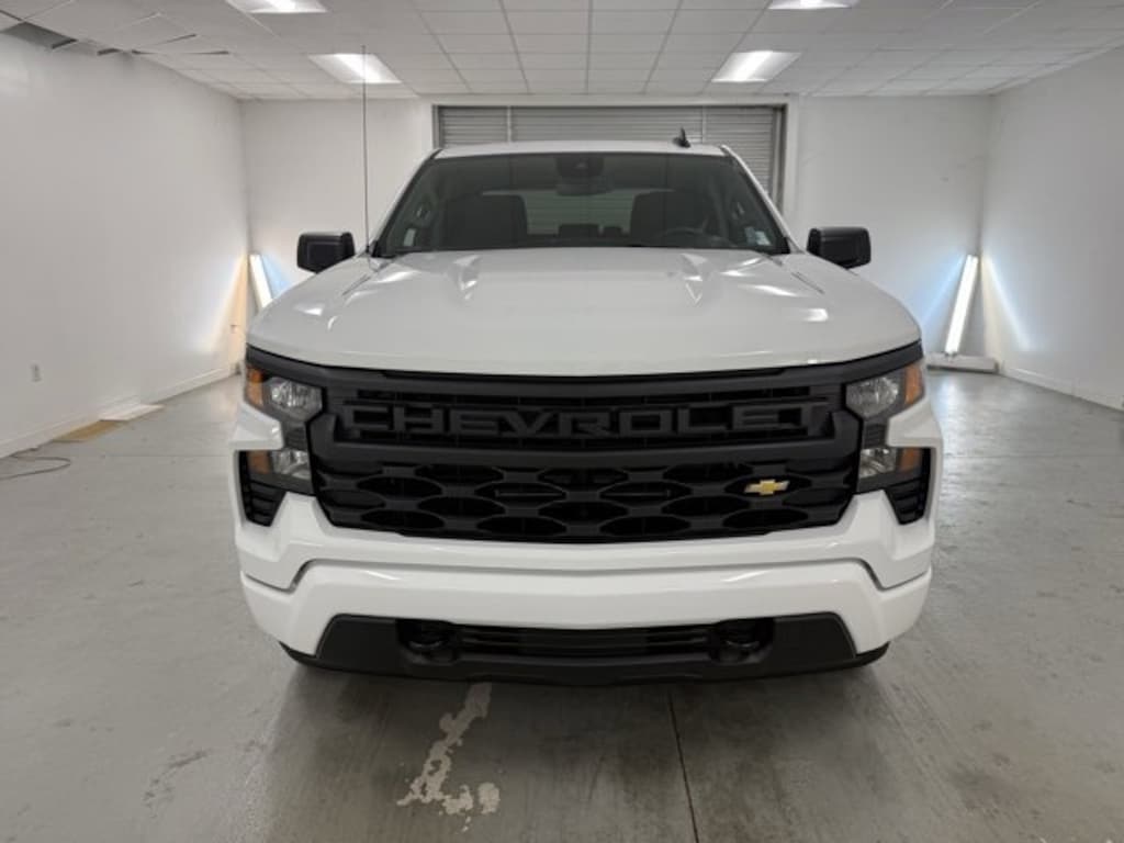 8-Speed Automatic, Jet Black Premium Cloth, 10-Way Power Driver Seat w/Lumbar, 120-Volt Bed Mounted Power Outlet, 120-Volt Interior Power Outlet, 3.42 Rear Axle Ratio, 3.5 Monochromatic Display Driver Info Center, 4-Wheel Disc Brakes, 40/20/40 Front Split-Bench Seat, 6 Speakers, 6-Speaker Audio System, ABS brakes, Air Conditioning, All-Weather Floor Liner (LPO), Alloy wheels, AM/FM radio: SiriusXM, Apple CarPlay/Android Auto, Auto High-beam Headlights, Automatic Emergency Braking, Bluetooth® For Phone, Brake assist, Bumpers: body-color, Cloth Seat Trim, Color-Keyed Carpeting Floor Covering, Compass, Custom Convenience Package, Custom Value Package, Deep-Tinted Glass, Delay-off headlights, Driver door bin, Driver vanity mirror, Dual front impact airbags, Dual front side impact airbags, Dual Rear USB Ports (Charge Only), Electric Rear-Window Defogger, Electronic Cruise Control, Electronic Stability Control, Emergency communication system: OnStar, EZ Lift Power Lock & Release Tailgate, Following Distance Indicator, Forward Collision Alert, Front anti-roll bar, Front Center Armrest w/Storage, Front Frame-Mounted Black Recovery Hooks, Front License Plate Kit, Front Pedestrian Braking, Front reading lights, Front Rubberized Vinyl Floor Mats, Front wheel independent suspension, Fully automatic headlights, HD Rear Vision Camera, Heated door mirrors, High Capacity Suspension Package, Hitch Guidance, Illuminated entry, IntelliBeam Automatic High Beam On/Off, Lane Keep Assist w/Lane Departure Warning, LED Cargo Area Lighting, Low tire pressure warning, Manual Tilt Wheel Steering Column, Occupant sensing airbag, OnStar Services Capable, Outside temperature display, Overhead airbag, Overhead console, Panic alarm, Passenger door bin, Passenger vanity mirror, Power door mirrors, Power driver seat, Power Front Windows w/Driver Express Up/Down, Power Front Windows w/Passenger Express Down, Power Rear Windows w/Express Down, Power steering, Power windows, Preferred Equipment Group 1CX, Premium audio system: Chevrolet Infotainment 3, Radio data system, Radio: Chevrolet Infotainment 3 System, Rear 60/40 Folding Bench Seat (Folds Up), Rear reading lights, Rear Rubberized-Vinyl Floor Mats, Rear step bumper, Rear window defroster, Remote Keyless Entry, Remote keyless entry, Remote Vehicle Starter System, Security system, SiriusXM Trial Subscription, Speed control, Speed-sensing steering, Split folding rear seat, Standard Tailgate, Tachometer, Teen Driver, Theft Deterrent System (Unauthorized Entry), Tilt steering wheel, Tire Pressure Monitoring System, Traction control, Trailering Package, Trip computer, Variably intermittent wipers, Voltmeter, Wheels: 20 x 9 Bright Silver Painted Aluminum, Wi-Fi Hot Spot Capable, 8-Speed Automatic, Jet Black Premium Cloth. 2026 Chevrolet Silverado 1500 Custom Custom