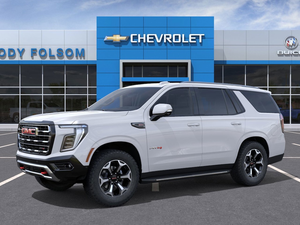 4WD, 10 Speakers, 3.23 Rear Axle Ratio, 3rd row seats: split-bench, 4-Way Power Driver Lumbar Seat Adjuster, 4-Way Power Front Passenger Lumbar Seat Adjuster, 4-Wheel Disc Brakes, ABS brakes, Adaptive suspension, Air Conditioning, Alloy wheels, AM/FM radio: SiriusXM with 360L, Apple CarPlay/Android Auto, Audio memory, Auto High-beam Headlights, Auto-dimming door mirrors, Auto-dimming Rear-View mirror, Auto-leveling suspension, Automatic temperature control, AutoSense Hands-Free Power Liftgate, Black Roof-Mounted Luggage Rack Side Rails, Body-Color Door Handles, Bose 10-Speaker Surround w/CenterPoint, Brake assist, Bright Front & Rear Door Sill Plates, Bumpers: body-color, Compass, Delay-off headlights, Driver door bin, Driver vanity mirror, Dual Exhaust System, Dual front impact airbags, Dual front side impact airbags, Electronic Stability Control, Emergency communication system: OnStar and GMC connected services capable, Exterior Parking Camera Rear, Four wheel independent suspension, Front anti-roll bar, Front Bucket Seats, Front Center Armrest, Front dual zone A/C, Front fog lights, Front High-Approach Angle Fascia, Front reading lights, Fully automatic headlights, Garage door transmitter, Heated door mirrors, Heated Driver & Front Passenger Seats, Heated front seats, Heated rear seats, Heated steering wheel, Heavy-Duty Air Filter, Hill Descent Control, Illuminated entry, License Plate Front Mounting Package, Low tire pressure warning, Magnetic Ride Control Suspension, Memory seat, Navigation system: GMC Connected Navigation, Occupant sensing airbag, Outside temperature display, Overhead airbag, Overhead console, Panic alarm, Passenger door bin, Passenger vanity mirror, Perforated Heated & Ventilated Dr & Frt Pass Seats, Perforated Leather Seating Surfaces, Power door mirrors, Power driver seat, Power Liftgate, Power passenger seat, Power Release 2nd Row Bucket Seats, Power steering, Power Tilt & Telescopic Steering Column, Power windows, Preferred Equipment Group 4SB, Radio: 16.8 Diagonal Premium GMC Infotainment Sys, Rain sensing wipers, Rear air conditioning, Rear anti-roll bar, Rear reading lights, Rear seat center armrest, Rear window defroster, Rear window wiper, Red Horizontal-Mounted Recovery Hooks, Remote keyless entry, Security system, SiriusXM w/360L, Speed control, Speed-sensing steering, Split folding rear seat, Spoiler, Steering wheel memory, Steering wheel mounted audio controls, Tachometer, Telescoping steering wheel, Tilt steering wheel, Traction control, Trip computer, Turn signal indicator mirrors, Variably intermittent wipers, Ventilated front seats, Voltmeter, Wheels: 20 x 9 Machined & Painted, 4WD. 2026 GMC Yukon AT4 AT42026 GMC Yukon
