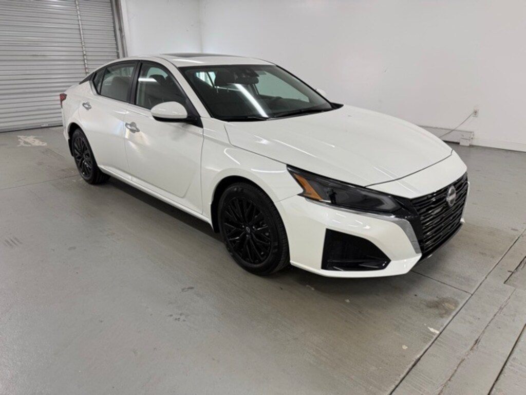 Pearl White 2025 Nissan Altima 2.5 SV FWD CVT with Xtronic 2.5L 4-Cylinder DOHC 16V CVT with Xtronic, 17" Machined Alloy Wheels, 4-Wheel Disc Brakes, 6 Speakers, ABS brakes, Air Conditioning, Alloy wheels, AM/FM radio: SiriusXM, Auto High-beam Headlights, Blind Spot Warning, Brake assist, Bumpers: body-color, Cloth Seat Trim, Delay-off headlights, Driver door bin, Driver vanity mirror, Dual front impact airbags, Dual front side impact airbags, Electronic Stability Control, Four wheel independent suspension, Front anti-roll bar, Front Bucket Seats, Front Center Armrest, Front reading lights, Fully automatic headlights, Illuminated entry, Knee airbag, Low tire pressure warning, NissanConnect featuring Apple CarPlay and Android Auto, Occupant sensing airbag, Outside temperature display, Overhead airbag, Overhead console, Panic alarm, Passenger door bin, Passenger vanity mirror, Power door mirrors, Power driver seat, Power steering, Power windows, Radio data system, Radio: AM/FM Audio System, Rear anti-roll bar, Rear Parking Sensors, Rear reading lights, Rear seat center armrest, Rear side impact airbag, Rear window defroster, Remote keyless entry, Security system, Speed control, Speed-sensing steering, Speed-Sensitive Wipers, Split folding rear seat, Steering wheel mounted audio controls, Tachometer, Telescoping steering wheel, Tilt steering wheel, Traction control, Trip computer, Variably intermittent wipers, CVT with Xtronic.