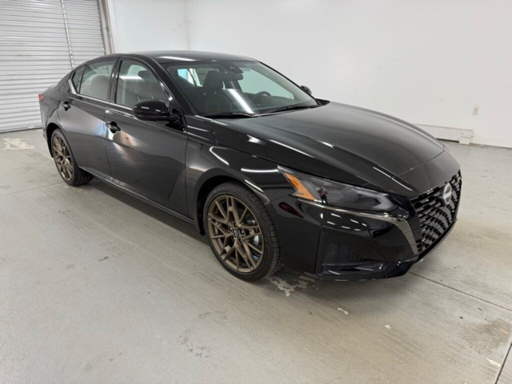 Super Black 2025 Nissan Altima 2.5 SR FWD CVT with Xtronic 2.5L 4-Cylinder DOHC 16V CVT with Xtronic, 4-Wheel Disc Brakes, 6 Speakers, ABS brakes, Air Conditioning, Alloy wheels, AM/FM radio: SiriusXM, Auto High-beam Headlights, Blind Spot Warning, Body-Colored Rear Spoiler, Body-Colored Splash Guards, Brake assist, Bumpers: body-color, Delay-off headlights, Driver door bin, Driver vanity mirror, Dual front impact airbags, Dual front side impact airbags, Electronic Stability Control, Four wheel independent suspension, Front anti-roll bar, Front Bucket Seats, Front Center Armrest, Front reading lights, Fully automatic headlights, Illuminated entry, Illuminated Kick Plates, Knee airbag, Leather Shift Knob, Low tire pressure warning, NissanConnect featuring Apple CarPlay and Android Auto, NissanConnect Services Powered by SiriusXM, Occupant sensing airbag, Outside temperature display, Overhead airbag, Overhead console, Panic alarm, Passenger door bin, Passenger vanity mirror, Power door mirrors, Power driver seat, Power steering, Power windows, Radio data system, Radio: AM/FM Audio System, Rear anti-roll bar, Rear Parking Sensors, Rear reading lights, Rear seat center armrest, Rear side impact airbag, Rear window defroster, Remote keyless entry, Security system, Speed control, Speed-sensing steering, Speed-Sensitive Wipers, Split folding rear seat, Sport Seat Trim, SR Floor Mats/Trunk Mat/Hideaway Nets, Steering wheel mounted audio controls, Tachometer, Telescoping steering wheel, Tilt steering wheel, Traction control, Trip computer, Unique Sport Seats, Variably intermittent wipers, Wheels: 19" Bronze Aluminum Alloy, Wheels: 19" Sport Machined Alloy, CVT with Xtronic.