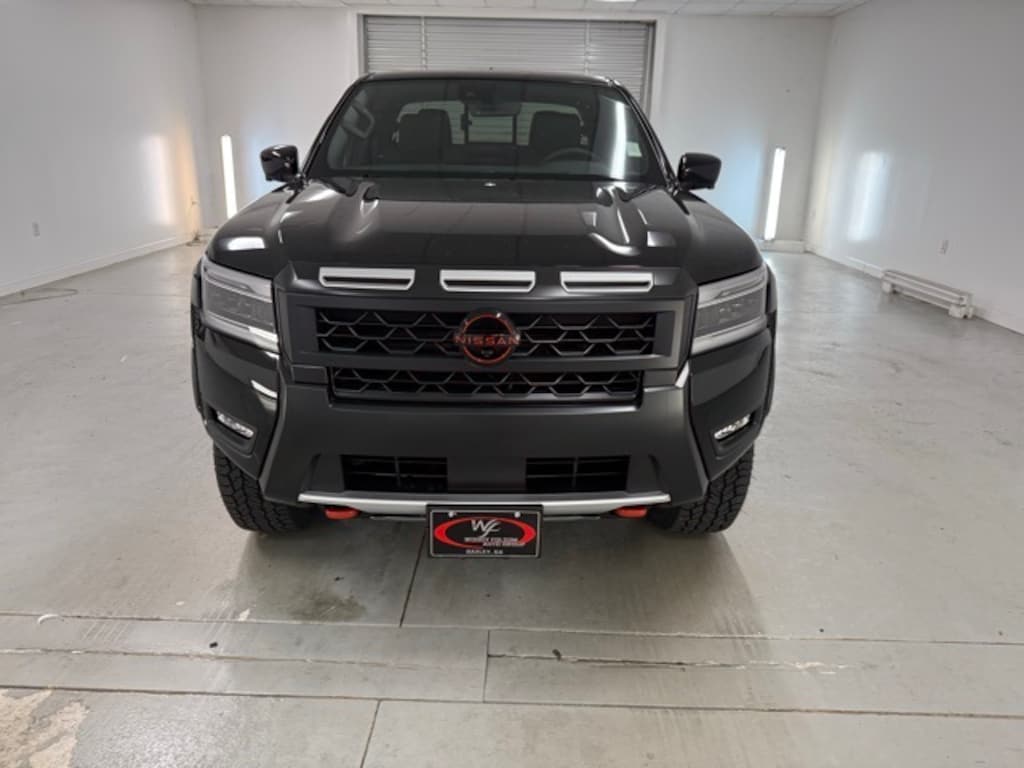 Super Black 2025 Nissan Frontier PRO-4X 4WD 9-Speed Automatic with Overdrive 3.8L DI DOHC 24V V6 4WD, 120V Power Outlet in Bed, 120V Power Outlet in Rear Center Console, 17" Painted Alloy Wheels, 3.692 Axle Ratio, 4-Wheel Disc Brakes, 6 Speakers, ABS brakes, Air Conditioning, Alloy wheels, AM/FM radio: SiriusXM, Antenna Update, Anti-whiplash front head restraints, Auto High-beam Headlights, Auto-Dimming Mirror, Auto-Tilt & Slide Sunroof w/Manual Shade, Automatic temperature control, Bed Under-Rail Lighting, Blind Spot Warning, Brake assist, Bumpers: body-color, Delay-off headlights, Driver door bin, Driver vanity mirror, Dual front impact airbags, Dual front side impact airbags, Electronic Stability Control, Electronic Tailgate Lock, Emergency communication system, Essentials Kit, Fender Premium Audio System w/10 Speakers, Front anti-roll bar, Front Bucket Seats, Front Center Armrest, Front dual zone A/C, Front fog lights, Front reading lights, Front wheel independent suspension, Fully automatic headlights, Heated Front Seats, Heated Outside Mirrors, Heated Steering Wheel, HomeLink UGDO, Illuminated entry, Intelligent Around View Monitor (I-AVM), Knee airbag, Leather Seat Trim, Leather Shift Knob, Leather steering wheel, Low tire pressure warning, Mud Flap Accessory, Nissan Door-to-Door Navigation, Occupant sensing airbag, Overhead airbag, Overhead console, Panic alarm, Partial Under-Seat Storage Delete, Passenger door bin, Passenger vanity mirror, Power door mirrors, Power driver seat, Power passenger seat, Power steering, Power windows, PRO Convenience Package, PRO Embroidered Premium Cloth Seat Trim, PRO Premium Package, PRO-4X Carpeted Floor Mats (DISC), Radio data system, Radio: SXM/AM/FM/AUX/USB Audio System, Rear anti-roll bar, Rear seat center armrest, Rear side impact airbag, Rear step bumper, Remote Engine Starter, Remote keyless entry, Security system, Speed control, Speed-sensing steering, Split folding rear seat, Spray-In Bedliner, Steering wheel mounted audio controls, Tachometer, Telescoping steering wheel, Tilt steering wheel, Tow Package (T11) (DISC), Traction control, Traffic Sign Recognition (TSR), Trailer Hitch w/Wiring Harness, Trip computer, Utili-Track System, Variably intermittent wipers, Voltmeter, Wireless Apple CarPlay/Wireless Android Auto, Wireless Charging for Personal Devices, 4WD.