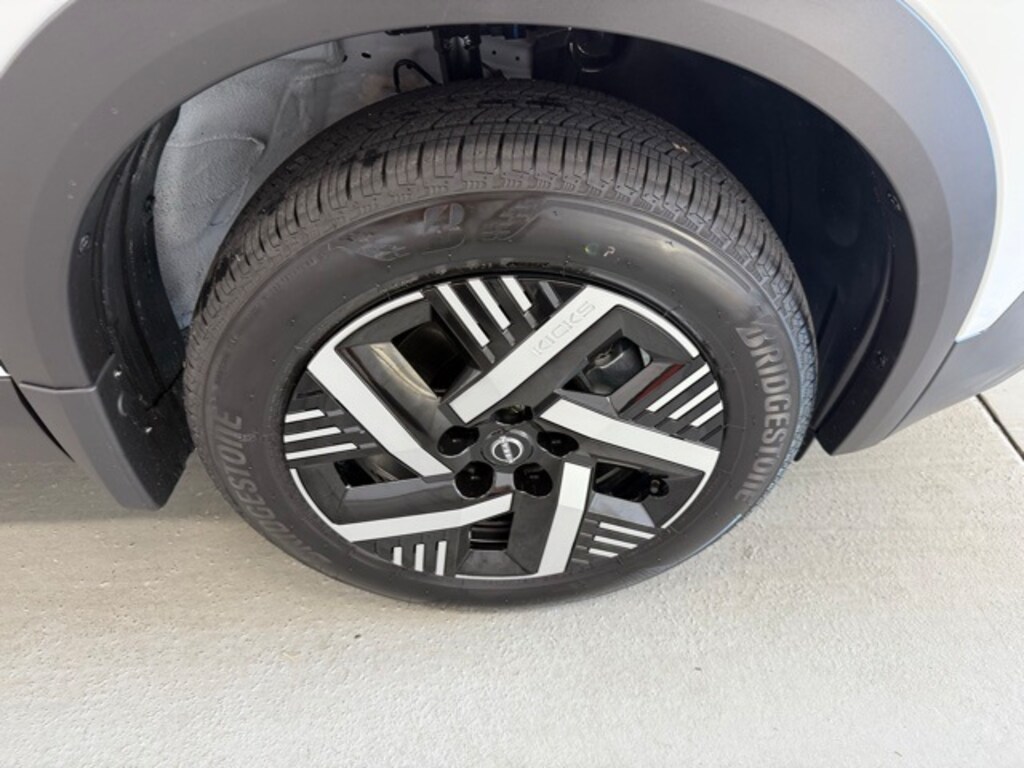 Aspen White 2025 Nissan Kicks SV FWD CVT with Xtronic 2.0L DOHC 4 Speakers, 4-Wheel Disc Brakes, ABS brakes, Air Conditioning, AM/FM radio: Sirius, Auto High-beam Headlights, Blind Spot Warning, Brake assist, Bumpers: body-color, Cloth Seat Trim, Driver door bin, Driver vanity mirror, Dual front impact airbags, Dual front side impact airbags, Electronic Stability Control, Front anti-roll bar, Front Bucket Seats, Front Center Armrest, Front reading lights, Front wheel independent suspension, Fully automatic headlights, Illuminated entry, Knee airbag, Low tire pressure warning, Occupant sensing airbag, Outside temperature display, Overhead airbag, Panic alarm, Passenger door bin, Passenger vanity mirror, Power door mirrors, Power steering, Power windows, Radio data system, Radio: AM/FM Audio System, Rear anti-roll bar, Rear Parking Sensors, Rear reading lights, Rear side impact airbag, Rear window defroster, Rear window wiper, Remote keyless entry, Security system, Speed control, Speed-sensing steering, Split folding rear seat, Spoiler, Sport steering wheel, Steering wheel mounted audio controls, Tachometer, Telescoping steering wheel, Tilt steering wheel, Traction control, Trip computer, Variably intermittent wipers, Wheels: 17" Steel Flex w/Full Covers, Wireless Apple CarPlay/Wireless Android Auto.