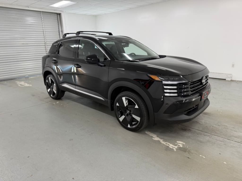 Super Black 2025 Nissan Kicks SR FWD CVT with Xtronic 2.0L DOHC 17" Alloy Wheels, 4-Wheel Disc Brakes, 6 Speakers, ABS brakes, Air Conditioning, Alloy wheels, AM/FM radio: Sirius, Auto High-beam Headlights, Automatic temperature control, Brake assist, Bumpers: body-color, Delay-off headlights, Driver door bin, Driver vanity mirror, Dual front impact airbags, Dual front side impact airbags, Electronic Stability Control, Front anti-roll bar, Front Bucket Seats, Front Center Armrest, Front reading lights, Front wheel independent suspension, Fully automatic headlights, Illuminated entry, Knee airbag, Leather Shift Knob, Leather steering wheel, Low tire pressure warning, Occupant sensing airbag, Outside temperature display, Overhead airbag, Overhead console, Panic alarm, Passenger door bin, Passenger vanity mirror, Power door mirrors, Power steering, Power windows, Radio data system, Radio: AM/FM Audio System, Rear anti-roll bar, Rear reading lights, Rear seat center armrest, Rear side impact airbag, Rear window defroster, Rear window wiper, Remote keyless entry, Security system, Speed control, Speed-sensing steering, Split folding rear seat, Spoiler, Sport Cloth/Leatherette Seat Trim, Sport steering wheel, Steering wheel mounted audio controls, Tachometer, Telescoping steering wheel, Tilt steering wheel, Traction control, Trip computer, Turn signal indicator mirrors, Variably intermittent wipers, Wireless Apple CarPlay/Wireless Android Auto.