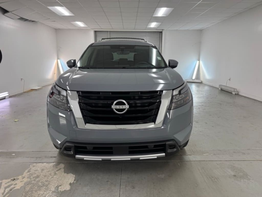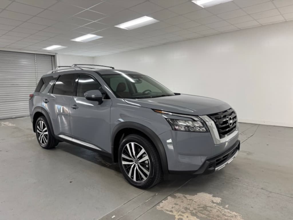 Boulder Gray 2025 Nissan Pathfinder Platinum FWD 9-Speed Automatic 3.5L V6 DOHC 13 Speakers, 3rd row seats: bench, 4-Wheel Disc Brakes, ABS brakes, Air Conditioning, Alloy wheels, AM/FM radio: SiriusXM, Auto High-beam Headlights, Auto tilt-away steering wheel, Auto-dimming Rear-View mirror, Automatic temperature control, Bodyside moldings, Bose Premium Audio System, Brake assist, Bumpers: body-color, Climate Controlled Front Bucket Seats, Delay-off headlights, Driver door bin, Driver vanity mirror, Dual front impact airbags, Dual front side impact airbags, Electronic Stability Control, Emergency communication system, Exterior Parking Camera Rear, Four wheel independent suspension, Front anti-roll bar, Front Bucket Seats, Front Center Armrest, Front dual zone A/C, Front reading lights, Fully automatic headlights, Garage door transmitter: HomeLink, Heads-Up Display, Heated door mirrors, Heated front seats, Heated rear seats, Heated steering wheel, Illuminated entry, Knee airbag, Leather steering wheel, Low tire pressure warning, Memory seat, Navigation system: NissanConnect with Navigation and Services, NissanConnect featuring Apple CarPlay and Android Auto, NissanConnect w/Navigation & Services, Occupant sensing airbag, Outside temperature display, Overhead airbag, Overhead console, Panic alarm, Passenger door bin, Passenger vanity mirror, Power door mirrors, Power driver seat, Power Liftgate, Power moonroof, Power passenger seat, Power steering, Power windows, Radio data system, Radio: AM/FM Audio System, Rain sensing wipers, Rear air conditioning, Rear anti-roll bar, Rear reading lights, Rear seat center armrest, Rear side impact airbag, Rear window defroster, Rear window wiper, Reclining 3rd row seat, Remote keyless entry, Security system, Semi-Aniline Leather-Appointed Seating Surfaces, Speed control, Speed-sensing steering, Speed-Sensitive Wipers, Split folding rear seat, Spoiler, Steering wheel memory, Steering wheel mounted audio controls, Tachometer, Telescoping steering wheel, Tilt steering wheel, Traction control, Trip computer, Turn signal indicator mirrors, Variably intermittent wipers, Ventilated front seats, Wheels: 20" x 8J Machined Alloy.