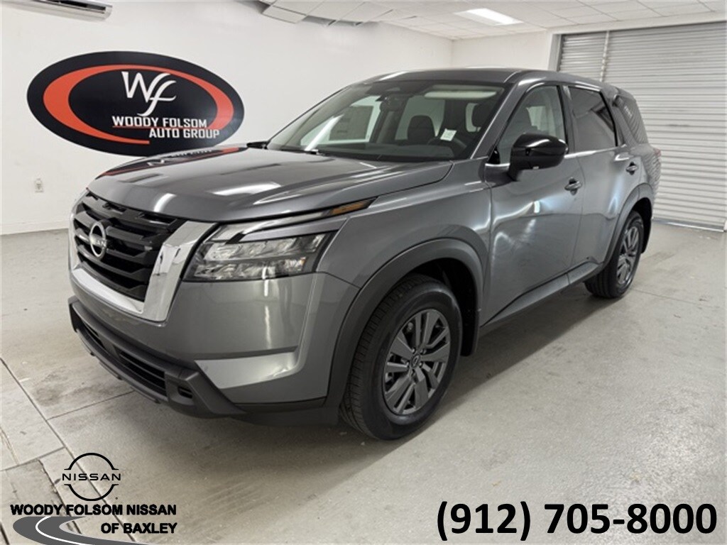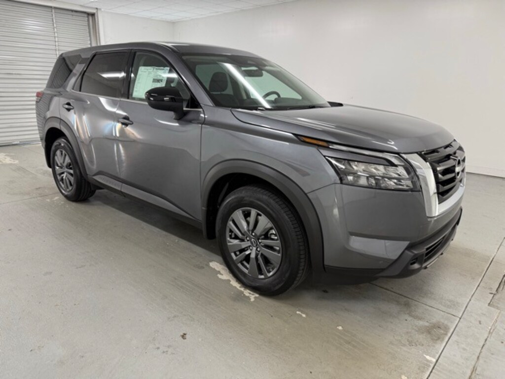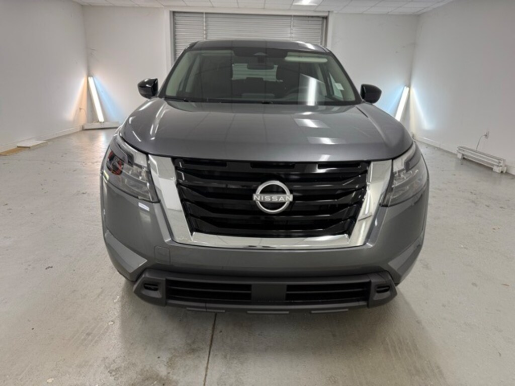 Gun Met 2025 Nissan Pathfinder S FWD 9-Speed Automatic 3.5L V6 DOHC 3rd row seats: bench, 4-Wheel Disc Brakes, 6 Speakers, ABS brakes, Air Conditioning, Alloy wheels, AM/FM radio: SiriusXM, Auto High-beam Headlights, Automatic temperature control, Blind Spot Warning, Brake assist, Bumpers: body-color, Cloth Seating Surfaces, Delay-off headlights, Driver door bin, Driver vanity mirror, Dual front impact airbags, Dual front side impact airbags, Electronic Stability Control, Four wheel independent suspension, Front anti-roll bar, Front Bucket Seats, Front Center Armrest, Front dual zone A/C, Front reading lights, Fully automatic headlights, Illuminated entry, Knee airbag, Low tire pressure warning, NissanConnect featuring Apple CarPlay and Android Auto, Occupant sensing airbag, Outside temperature display, Overhead airbag, Overhead console, Panic alarm, Passenger door bin, Passenger vanity mirror, Power door mirrors, Power steering, Power windows, Radio data system, Radio: AM/FM Audio System w/NissanConnect, Rear air conditioning, Rear anti-roll bar, Rear Parking Sensors, Rear reading lights, Rear side impact airbag, Rear window defroster, Rear window wiper, Reclining 3rd row seat, Remote keyless entry, Security system, Speed control, Speed-sensing steering, Split folding rear seat, Spoiler, Steering wheel mounted audio controls, Tachometer, Telescoping steering wheel, Tilt steering wheel, Traction control, Trip computer, Variably intermittent wipers, Wheels: 18" x 8J Painted Alloy.