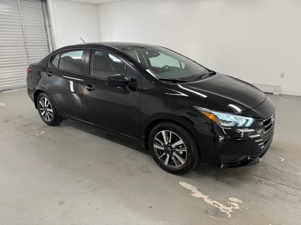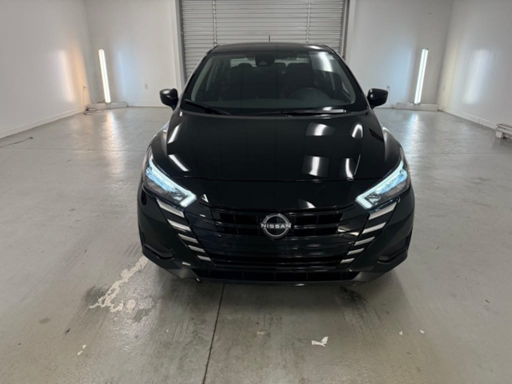 Super Black 2025 Nissan Versa 1.6 S FWD CVT 1.6L I4 DOHC 16V 15" Steel Wheels w/Full Wheel Covers, 4 Speakers, ABS brakes, Air Conditioning, AM/FM radio, Auto High-beam Headlights, Brake assist, Bumpers: body-color, Cloth Seat Trim, Delay-off headlights, Driver door bin, Driver vanity mirror, Dual front impact airbags, Dual front side impact airbags, Electronic Stability Control, Front anti-roll bar, Front Bucket Seats, Front reading lights, Front wheel independent suspension, Fully automatic headlights, Illuminated entry, Knee airbag, Low tire pressure warning, Occupant sensing airbag, Outside temperature display, Overhead airbag, Panic alarm, Passenger door bin, Passenger vanity mirror, Power door mirrors, Power steering, Power windows, Radio data system, Radio: AM/FM Audio System, Rear Parking Sensors, Rear side impact airbag, Rear window defroster, Speed control, Steering wheel mounted audio controls, Tachometer, Telescoping steering wheel, Tilt steering wheel, Traction control, Trip computer, Variably intermittent wipers.