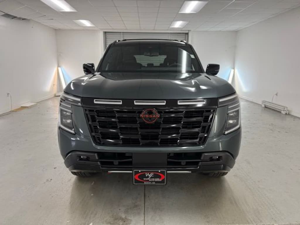 Alpine 2026 Nissan Armada PRO-4X 4WD 9-Speed Automatic 3.5L DOHC 4WD, 12 Speakers, 3rd row seats: split-bench, 4-Wheel Disc Brakes, ABS brakes, Adaptive suspension, Air Conditioning, Alloy wheels, AM/FM radio: SiriusXM w/360L, Anti-whiplash front head restraints, Apple CarPlay/Android Auto, Auto High-beam Headlights, Auto tilt-away steering wheel, Auto-dimming door mirrors, Auto-dimming Rear-View mirror, Auto-leveling suspension, Automatic temperature control, Brake assist, Bumpers: body-color, Compass, Delay-off headlights, Driver door bin, Driver vanity mirror, Dual front impact airbags, Dual front side impact airbags, Electronic Stability Control, Emergency communication system: NissanConnect Services, Four wheel independent suspension, Front anti-roll bar, Front Bucket Seats, Front Center Armrest, Front dual zone A/C, Front fog lights, Front reading lights, Front Tow Hooks, Fully automatic headlights, Garage door transmitter: myQ Connected Garage, Genuine wood dashboard insert, Heated door mirrors, Heated Front Bucket Seats, Heated front seats, Heated steering wheel, HVAC memory, Illuminated entry, Knee airbag, Leather steering wheel, Low tire pressure warning, Memory seat, Navigation system: Google Maps, Occupant sensing airbag, Outside temperature display, Overhead airbag, Overhead console, Panic alarm, Passenger door bin, Passenger vanity mirror, Power door mirrors, Power driver seat, Power Liftgate, Power passenger seat, Power steering, Power windows, Premium Paint and 2-Tone Roof, Pro-4x Leather Quilted Insert Seat Trim, Radio: NissanConnect with SiriusXM 360L, Rain sensing wipers, Rear air conditioning, Rear anti-roll bar, Rear reading lights, Rear seat center armrest, Rear window defroster, Rear window wiper, Reclining 3rd row seat, Remote keyless entry, Security system, Speed control, Speed-sensing steering, Speed-Sensitive Wipers, Split folding rear seat, Spoiler, Steering wheel memory, Steering wheel mounted audio controls, Tachometer, Telescoping steering wheel, Tilt steering wheel, Traction control, Trip computer, Turn signal indicator mirrors, Variably intermittent wipers, Voltmeter, Wheels: 20" x 8.5J Painted PRO-4X Alloy, 4WD.