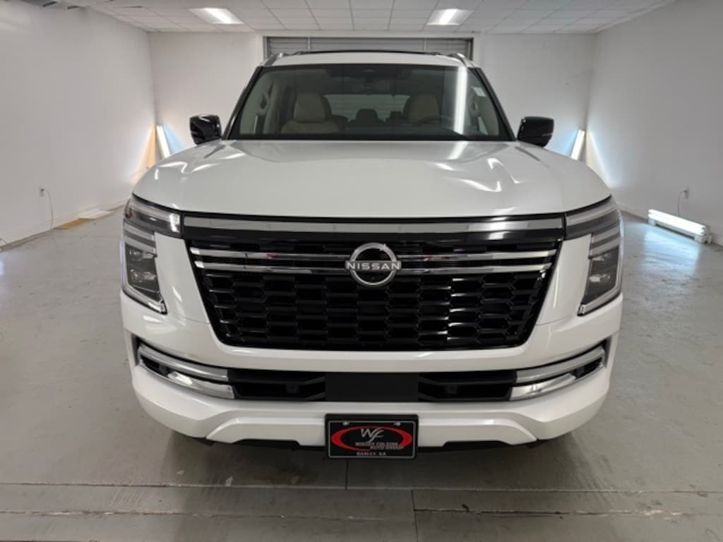 White Pearl 2026 Nissan Armada Platinum Reserve 4WD 9-Speed Automatic 3.5L DOHC 4WD, 12 Speakers, 3rd row seats: split-bench, 4-Wheel Disc Brakes, ABS brakes, Adaptive suspension, Air Conditioning, Alloy wheels, AM/FM radio: SiriusXM w/360L, Anti-whiplash front head restraints, Apple CarPlay/Android Auto, Auto High-beam Headlights, Auto tilt-away steering wheel, Auto-dimming door mirrors, Auto-dimming Rear-View mirror, Auto-leveling suspension, Automatic temperature control, Brake assist, Bumpers: body-color, Climate Controlled Heated & Ventilated Front Seats, Compass, Delay-off headlights, Driver door bin, Driver vanity mirror, Dual front impact airbags, Dual front side impact airbags, Electronic Stability Control, Emergency communication system: NissanConnect Services, Four wheel independent suspension, Front anti-roll bar, Front Bucket Seats, Front Center Armrest, Front dual zone A/C, Front fog lights, Front reading lights, Fully automatic headlights, Garage door transmitter: HomeLink, Genuine wood dashboard insert, Heads-Up Display, Heated door mirrors, Heated front seats, Heated rear seats, Heated steering wheel, HVAC memory, Illuminated entry, Knee airbag, Leather steering wheel, Low tire pressure warning, Memory seat, Navigation system: Google Maps, Occupant sensing airbag, Outside temperature display, Overhead airbag, Overhead console, Panic alarm, Passenger door bin, Passenger vanity mirror, Power door mirrors, Power driver seat, Power Liftgate, Power moonroof, Power passenger seat, Power steering, Power windows, Quilted Leather Seat Trim, Radio: NissanConnect w/SiriusXM 360L, Rain sensing wipers, Rear air conditioning, Rear anti-roll bar, Rear reading lights, Rear window defroster, Rear window wiper, Reclining 3rd row seat, Remote keyless entry, Security system, Speed control, Speed-sensing steering, Speed-Sensitive Wipers, Split folding rear seat, Spoiler, Steering wheel memory, Steering wheel mounted audio controls, Tachometer, Telescoping steering wheel, Tilt steering wheel, Traction control, Trip computer, Turn signal indicator mirrors, Variably intermittent wipers, Ventilated front seats, Voltmeter, Wheels: 22" x 8.5J Machined & Painted Alloy, 4WD.
