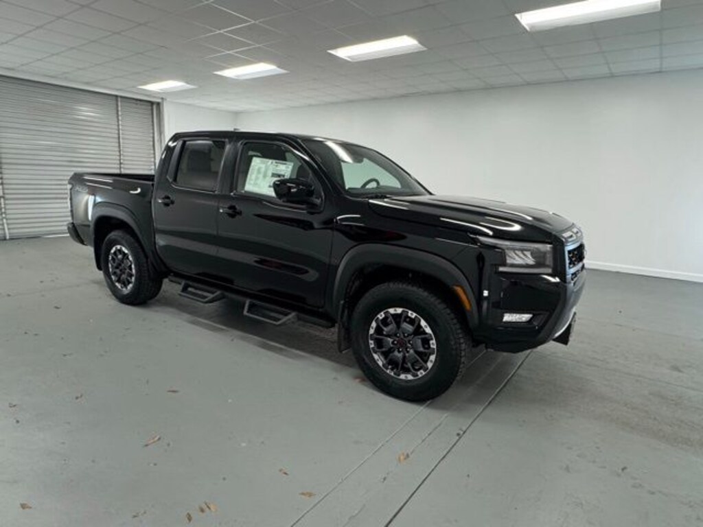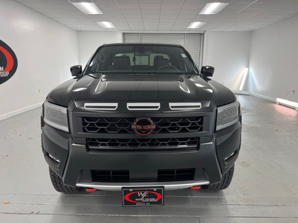Super Black 2026 Nissan Frontier PRO-4X 4WD 9-Speed Automatic with Overdrive 3.8L DI DOHC 24V V6 4WD, 17" Painted Alloy Wheels, 3.692 Axle Ratio, 4-Wheel Disc Brakes, 6 Speakers, ABS brakes, Air Conditioning, Alloy wheels, AM/FM radio: SiriusXM, Anti-whiplash front head restraints, Auto High-beam Headlights, Automatic temperature control, Blind Spot Warning, Brake assist, Bumpers: body-color, Delay-off headlights, Driver door bin, Driver vanity mirror, Dual front impact airbags, Dual front side impact airbags, Electronic Stability Control, Emergency communication system, Front anti-roll bar, Front Bucket Seats, Front Center Armrest, Front dual zone A/C, Front fog lights, Front reading lights, Front wheel independent suspension, Fully automatic headlights, Heated Front Bucket Seats, Heated front seats, Heated steering wheel, Illuminated entry, Knee airbag, Leather steering wheel, Low tire pressure warning, Occupant sensing airbag, Overhead airbag, Overhead console, Panic alarm, Passenger door bin, Passenger vanity mirror, Power door mirrors, Power driver seat, Power passenger seat, Power steering, Power windows, PRO Embroidered Premium Cloth Seat Trim, PRO-4X Carpeted Floor Mats, Radio data system, Radio: SXM/AM/FM/AUX/USB Audio System, Rear anti-roll bar, Rear seat center armrest, Rear side impact airbag, Rear step bumper, Remote Engine Starter, Remote keyless entry, Security system, Speed control, Speed-sensing steering, Split folding rear seat, Steering wheel mounted audio controls, Tachometer, Telescoping steering wheel, Tilt steering wheel, Tow Package (T11), Traction control, Trip computer, Variably intermittent wipers, Voltmeter, Wireless Apple CarPlay/Wireless Android Auto, 4WD.
