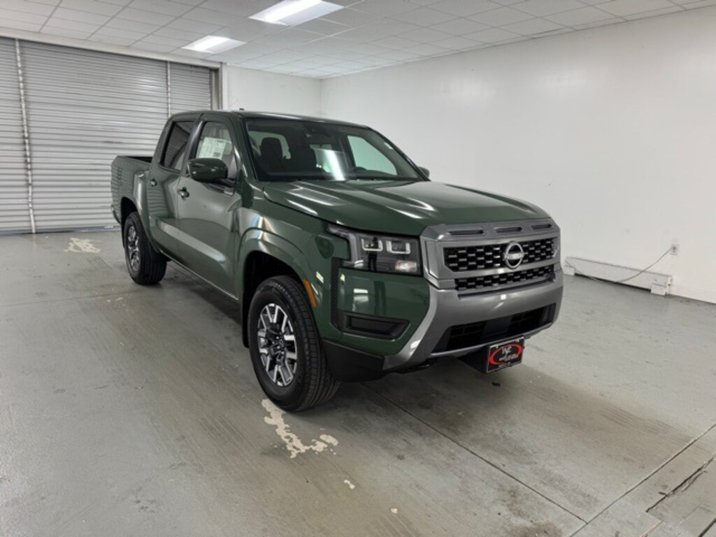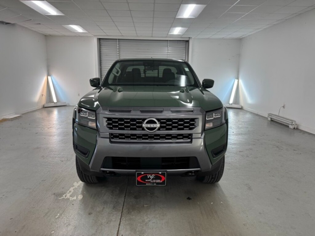 Green 2026 Nissan Frontier SV 4WD 9-Speed Automatic with Overdrive 3.8L DI DOHC 24V V6 4WD, 17" Alloy Wheels, 3.692 Axle Ratio, 4-Wheel Disc Brakes, 6 Speakers, ABS brakes, Air Conditioning, Alloy wheels, AM/FM radio: SiriusXM, Anti-whiplash front head restraints, Auto High-beam Headlights, Blind Spot Warning, Brake assist, Bumpers: body-color, Delay-off headlights, Driver door bin, Driver vanity mirror, Dual front impact airbags, Dual front side impact airbags, Electronic Stability Control, Emergency communication system, Front anti-roll bar, Front Bucket Seats, Front Center Armrest, Front reading lights, Front wheel independent suspension, Fully automatic headlights, Illuminated entry, Knee airbag, Low tire pressure warning, Occupant sensing airbag, Overhead airbag, Overhead console, Panic alarm, Passenger door bin, Passenger vanity mirror, Power door mirrors, Power driver seat, Power steering, Power windows, Premium Cloth Seat Trim, Radio data system, Radio: SXM/AM/FM/AUX/USB Audio System, Rear anti-roll bar, Rear seat center armrest, Rear side impact airbag, Rear step bumper, Remote keyless entry, Security system, Speed control, Speed-sensing steering, Split folding rear seat, Steering wheel mounted audio controls, Tachometer, Telescoping steering wheel, Tilt steering wheel, Traction control, Trip computer, Variably intermittent wipers, Voltmeter, Wireless Apple CarPlay/Wireless Android Auto, 4WD.