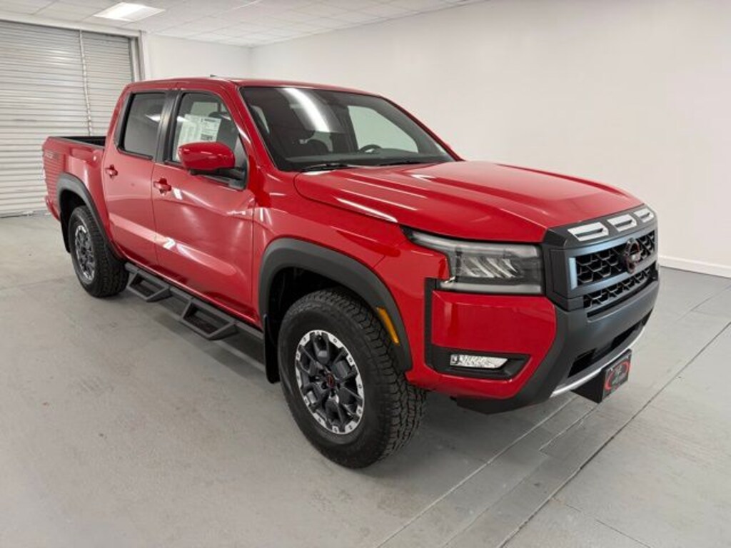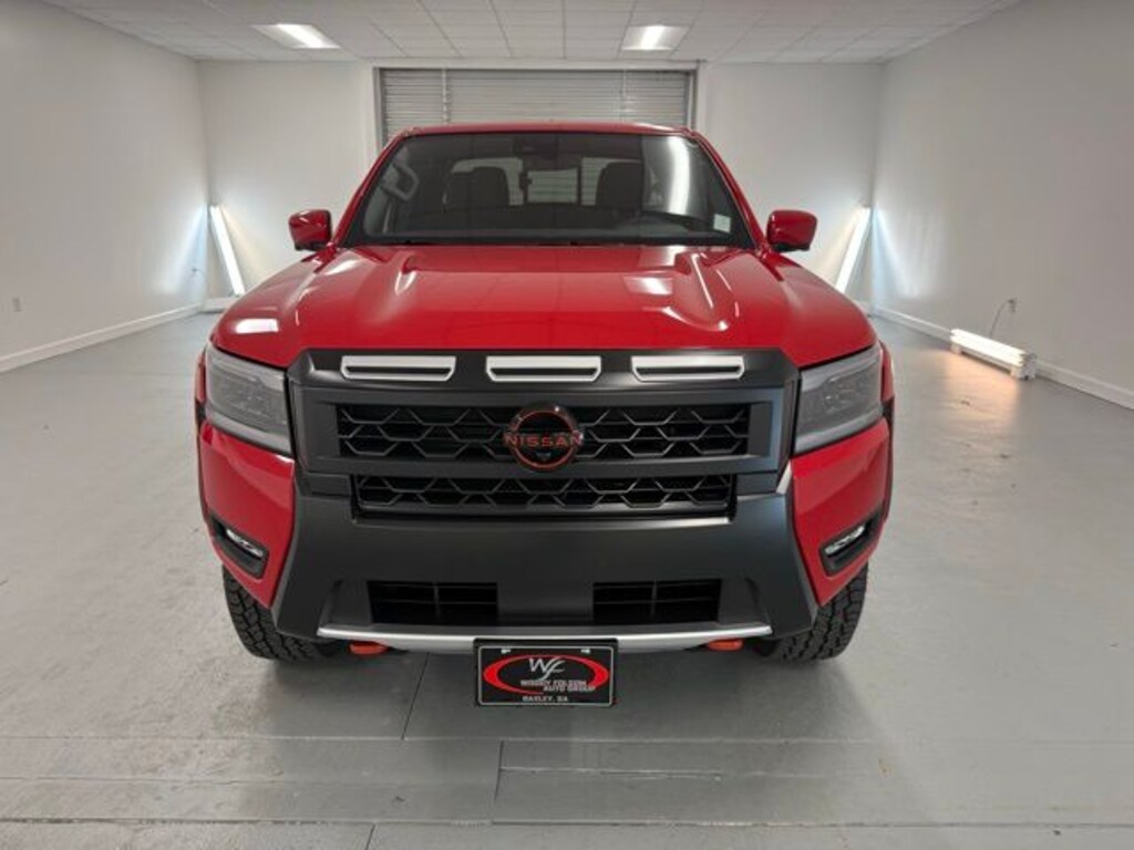 Red Alert 2026 Nissan Frontier PRO-4X 4WD 9-Speed Automatic with Overdrive 3.8L DI DOHC 24V V6 4WD, 17" Painted Alloy Wheels, 3.692 Axle Ratio, 4-Wheel Disc Brakes, 6 Speakers, ABS brakes, Air Conditioning, Alloy wheels, AM/FM radio: SiriusXM, Anti-whiplash front head restraints, Auto High-beam Headlights, Automatic temperature control, Blind Spot Warning, Brake assist, Bumpers: body-color, Delay-off headlights, Driver door bin, Driver vanity mirror, Dual front impact airbags, Dual front side impact airbags, Electronic Stability Control, Emergency communication system, Front anti-roll bar, Front Bucket Seats, Front Center Armrest, Front dual zone A/C, Front fog lights, Front reading lights, Front wheel independent suspension, Fully automatic headlights, Heated Front Bucket Seats, Heated front seats, Heated steering wheel, Illuminated entry, Knee airbag, Leather steering wheel, Low tire pressure warning, Occupant sensing airbag, Overhead airbag, Overhead console, Panic alarm, Passenger door bin, Passenger vanity mirror, Power door mirrors, Power driver seat, Power passenger seat, Power steering, Power windows, PRO Embroidered Premium Cloth Seat Trim, PRO-4X Carpeted Floor Mats, Radio data system, Radio: SXM/AM/FM/AUX/USB Audio System, Rear anti-roll bar, Rear seat center armrest, Rear side impact airbag, Rear step bumper, Remote Engine Starter, Remote keyless entry, Security system, Speed control, Speed-sensing steering, Split folding rear seat, Steering wheel mounted audio controls, Tachometer, Telescoping steering wheel, Tilt steering wheel, Tow Package (T11), Traction control, Trip computer, Variably intermittent wipers, Voltmeter, Wireless Apple CarPlay/Wireless Android Auto, 4WD.