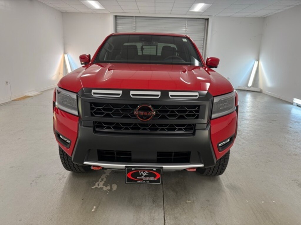 Red Alert 2026 Nissan Frontier PRO-4X 4WD 9-Speed Automatic with Overdrive 3.8L DI DOHC 24V V6 4WD, 17" Painted Alloy Wheels, 2-Tone Beadlock Style Wheel, 3.692 Axle Ratio, 4-Wheel Disc Brakes, 6 Speakers, ABS brakes, Air Conditioning, Alloy wheels, AM/FM radio: SiriusXM, Anti-whiplash front head restraints, Auto High-beam Headlights, Automatic temperature control, Blind Spot Warning, Brake assist, Bumpers: body-color, Delay-off headlights, Driver door bin, Driver vanity mirror, Dual front impact airbags, Dual front side impact airbags, Electronic Stability Control, Electronic Tailgate Lock, Emergency communication system, Essentials Kit, Front anti-roll bar, Front Bucket Seats, Front Center Armrest, Front dual zone A/C, Front fog lights, Front reading lights, Front wheel independent suspension, Fully automatic headlights, Heated Front Bucket Seats, Heated front seats, Heated steering wheel, Illuminated entry, Knee airbag, Leather Seat Trim, Leather steering wheel, Low tire pressure warning, Mud Flaps, Occupant sensing airbag, Off-Road Style Step Rails, Overhead airbag, Overhead console, Panic alarm, Passenger door bin, Passenger vanity mirror, Power door mirrors, Power driver seat, Power passenger seat, Power steering, Power windows, PRO Embroidered Premium Cloth Seat Trim, PRO Premium Package, PRO-4X Carpeted Floor Mats, PRO-4X Convenience Package, Radio data system, Radio: SXM/AM/FM/AUX/USB Audio System, Rear anti-roll bar, Rear seat center armrest, Rear side impact airbag, Rear step bumper, Remote keyless entry, Security system, Speed control, Speed-sensing steering, Split folding rear seat, Steering wheel mounted audio controls, Tachometer, Telescoping steering wheel, Tilt steering wheel, Tow Package (T11), Traction control, Trip computer, Variably intermittent wipers, Voltmeter, Wireless Apple CarPlay/Wireless Android Auto, 4WD.