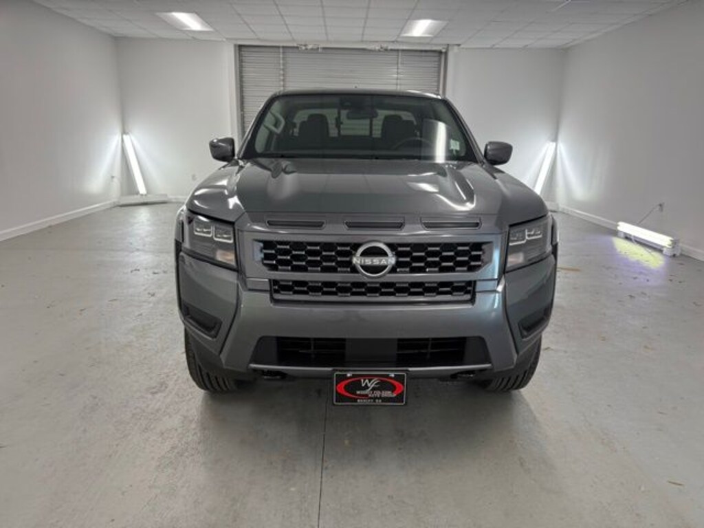 Gun Met 2026 Nissan Frontier SV 4WD 9-Speed Automatic with Overdrive V6 4WD, 17" Alloy Wheels, 3.692 Axle Ratio, 4-Wheel Disc Brakes, 6 Speakers, ABS brakes, Air Conditioning, Alloy wheels, AM/FM radio: SiriusXM, Anti-whiplash front head restraints, Auto High-beam Headlights, Blind Spot Warning, Brake assist, Bumpers: body-color, Delay-off headlights, Driver door bin, Driver vanity mirror, Dual front impact airbags, Dual front side impact airbags, Electronic Stability Control, Emergency communication system, Front anti-roll bar, Front Bucket Seats, Front Center Armrest, Front reading lights, Front wheel independent suspension, Fully automatic headlights, Illuminated entry, Knee airbag, Low tire pressure warning, Occupant sensing airbag, Overhead airbag, Overhead console, Panic alarm, Passenger door bin, Passenger vanity mirror, Power door mirrors, Power driver seat, Power steering, Power windows, Premium Cloth Seat Trim, Radio data system, Radio: SiriusXM/AM/FM/Auxiliary/USB Audio System, Rear anti-roll bar, Rear seat center armrest, Rear side impact airbag, Rear step bumper, Remote keyless entry, Security system, Speed control, Speed-sensing steering, Split folding rear seat, Steering wheel mounted audio controls, Tachometer, Telescoping steering wheel, Tilt steering wheel, Tow/Haul Mode Switch, Traction control, Trip computer, Variably intermittent wipers, Voltmeter, Wireless Apple CarPlay/Wireless Android Auto, 4WD.