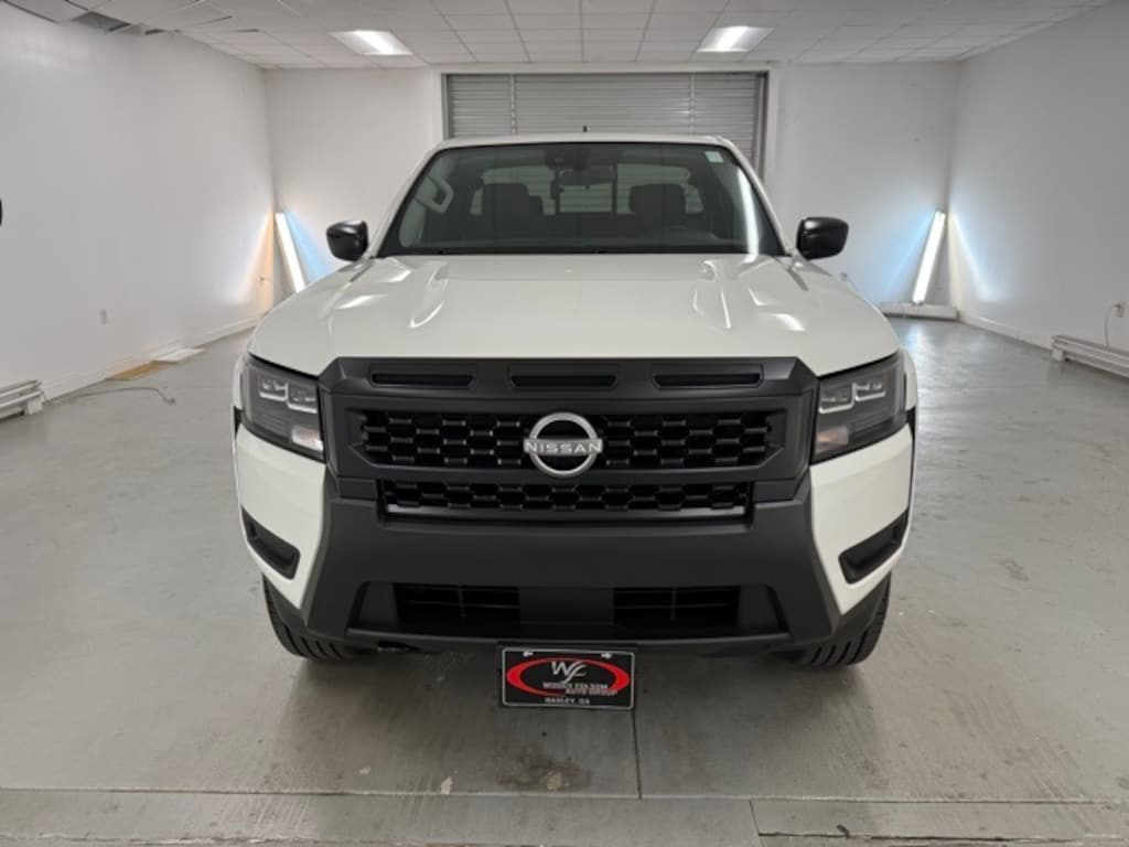 Glacier White 2026 Nissan Frontier S 4WD 9-Speed Automatic with Overdrive 3.8L DI DOHC 24V V6 4WD, 16" Styled Steel Wheels, 3.692 Axle Ratio, 4 Speakers, 4-Wheel Disc Brakes, ABS brakes, Air Conditioning, Anti-whiplash front head restraints, Apple CarPlay/Android Auto, Auto High-beam Headlights, Blind Spot Warning, Brake assist, Bumpers: body-color, Carpeted Floor Mats, Cloth Seat Trim, Delay-off headlights, Driver door bin, Dual front impact airbags, Dual front side impact airbags, Electronic Stability Control, Emergency communication system, Front anti-roll bar, Front Bucket Seats, Front Center Armrest, Front reading lights, Front wheel independent suspension, Fully automatic headlights, Illuminated entry, Knee airbag, Low tire pressure warning, Occupant sensing airbag, Overhead airbag, Overhead console, Panic alarm, Passenger door bin, Power steering, Power windows, Radio data system, Radio: AM/FM/AUX/USB Audio System, Rear side impact airbag, Rear step bumper, Remote keyless entry, Speed control, Speed-sensing steering, Splash Guards, Split folding rear seat, Steering wheel mounted audio controls, Tachometer, Telescoping steering wheel, Tilt steering wheel, Traction control, Trip computer, Variably intermittent wipers, 4WD.