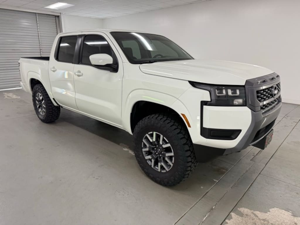 Glacier White 2026 Nissan Frontier SV 4WD 9-Speed Automatic with Overdrive 3.8L DI DOHC 24V V6 4WD, 120V Power Outlet in Bed, 120V Power Outlet in Rear Center Console, 17" Alloy Wheels, 17" Machined & Painted Alloy Wheels, 3.692 Axle Ratio, 4-Wheel Disc Brakes, 6 Speakers, ABS brakes, Air Conditioning, Alloy wheels, AM/FM radio: SiriusXM, Anti-whiplash front head restraints, Auto High-beam Headlights, Bed Under-Rail Lighting, Blind Spot Warning, Brake assist, Bumpers: body-color, Carpeted Floor Mats, Delay-off headlights, Driver door bin, Driver vanity mirror, Dual front impact airbags, Dual front side impact airbags, Electronic Stability Control, Electronic Tailgate Lock, Emergency communication system, Front anti-roll bar, Front Bucket Seats, Front Center Armrest, Front reading lights, Front wheel independent suspension, Fully automatic headlights, Heated Front Seats, Heated Leather Steering Wheel, Heated Outside Mirrors, HVAC - Dual-Zone Front Auto A/C, I-Key w/Request Switches on O/S Handles, Illuminated entry, Knee airbag, Locking Glove Box, Low tire pressure warning, Occupant sensing airbag, Overhead airbag, Overhead console, Panic alarm, Passenger door bin, Passenger vanity mirror, Power door mirrors, Power driver seat, Power steering, Power windows, Premium Cloth Seat Trim, Radio data system, Radio: SXM/AM/FM/AUX/USB Audio System, Rear anti-roll bar, Rear seat center armrest, Rear side impact airbag, Rear step bumper, Remote Engine Starter, Remote keyless entry, Security system, Speed control, Speed-sensing steering, Splash Guards, Split folding rear seat, Spray-In Bedliner, Steering wheel mounted audio controls, SV Convenience Package, Tachometer, Telescoping steering wheel, Tilt steering wheel, Tow Package (T11), Tow/Haul Mode Switch, Traction control, Trailer Hitch w/Wiring Harness, Trip computer, Utili-Track System, Variably intermittent wipers, Voltmeter, Wireless Apple CarPlay/Wireless Android Auto, 4WD.