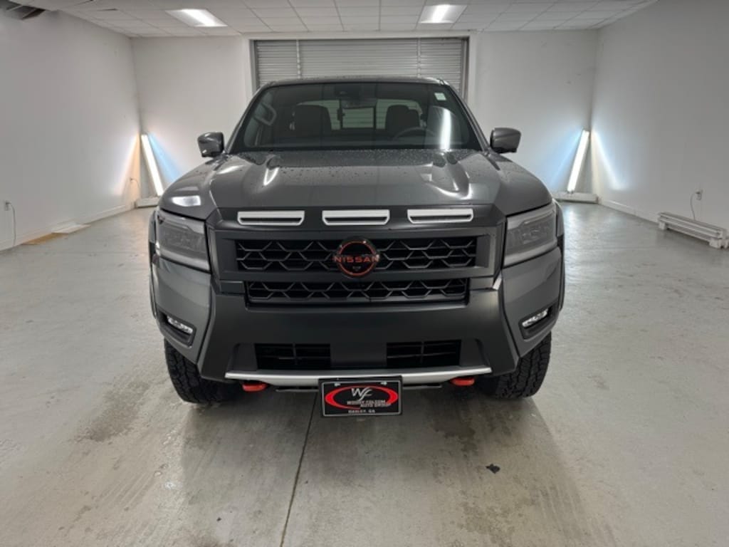 Gun Metallic 2026 Nissan Frontier PRO-4X 4WD 9-Speed Automatic with Overdrive 3.8L DI DOHC 24V V6 4WD, 17" Painted Alloy Wheels, 2-Tone Beadlock Style Wheel, 3.692 Axle Ratio, 4-Wheel Disc Brakes, 6 Speakers, ABS brakes, Air Conditioning, Alloy wheels, AM/FM radio: SiriusXM, Anti-whiplash front head restraints, Auto High-beam Headlights, Automatic temperature control, Blind Spot Warning, Brake assist, Bumpers: body-color, Delay-off headlights, Driver door bin, Driver vanity mirror, Dual front impact airbags, Dual front side impact airbags, Electronic Stability Control, Electronic Tailgate Lock, Emergency communication system, Essentials Kit, Front anti-roll bar, Front Bucket Seats, Front Center Armrest, Front dual zone A/C, Front fog lights, Front reading lights, Front wheel independent suspension, Fully automatic headlights, Heated Front Bucket Seats, Heated front seats, Heated steering wheel, Illuminated entry, Knee airbag, Leather Seat Trim, Leather steering wheel, Low tire pressure warning, Mud Flaps, Occupant sensing airbag, Off-Road Style Step Rails, Overhead airbag, Overhead console, Panic alarm, Passenger door bin, Passenger vanity mirror, Power door mirrors, Power driver seat, Power passenger seat, Power steering, Power windows, PRO Embroidered Premium Cloth Seat Trim, PRO Premium Package, PRO-4X Carpeted Floor Mats, PRO-4X Convenience Package, Radio data system, Radio: SXM/AM/FM/AUX/USB Audio System, Rear anti-roll bar, Rear seat center armrest, Rear side impact airbag, Rear step bumper, Remote keyless entry, Security system, Speed control, Speed-sensing steering, Split folding rear seat, Steering wheel mounted audio controls, Tachometer, Telescoping steering wheel, Tilt steering wheel, Tow Package (T11), Traction control, Trip computer, Variably intermittent wipers, Voltmeter, Wireless Apple CarPlay/Wireless Android Auto, 4WD.