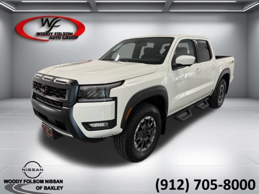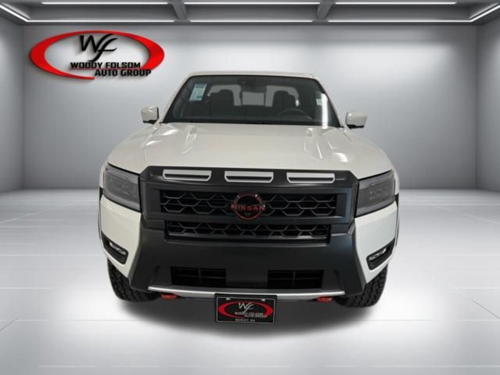 Glacier White 2026 Nissan Frontier PRO-4X 4WD 9-Speed Automatic with Overdrive 3.8L DI DOHC 24V V6 4WD, 17" Painted Alloy Wheels, 3.692 Axle Ratio, 4-Wheel Disc Brakes, 6 Speakers, ABS brakes, Air Conditioning, Alloy wheels, AM/FM radio: SiriusXM, Anti-whiplash front head restraints, Auto High-beam Headlights, Automatic temperature control, Blind Spot Warning, Brake assist, Bumpers: body-color, Delay-off headlights, Driver door bin, Driver vanity mirror, Dual front impact airbags, Dual front side impact airbags, Electronic Stability Control, Emergency communication system, Front anti-roll bar, Front Bucket Seats, Front Center Armrest, Front dual zone A/C, Front fog lights, Front reading lights, Front wheel independent suspension, Fully automatic headlights, Heated Front Bucket Seats, Heated front seats, Heated steering wheel, Illuminated entry, Knee airbag, Leather steering wheel, Low tire pressure warning, Occupant sensing airbag, Overhead airbag, Overhead console, Panic alarm, Passenger door bin, Passenger vanity mirror, Power door mirrors, Power driver seat, Power passenger seat, Power steering, Power windows, PRO Embroidered Premium Cloth Seat Trim, PRO-4X Carpeted Floor Mats, Radio data system, Radio: SiriusXM/AM/FM/Auxiliary/USB Audio System, Rear anti-roll bar, Rear seat center armrest, Rear side impact airbag, Rear step bumper, Remote Engine Starter, Remote keyless entry, Security system, Speed control, Speed-sensing steering, Split folding rear seat, Steering wheel mounted audio controls, Tachometer, Telescoping steering wheel, Tilt steering wheel, Tow Package, Traction control, Trip computer, Variably intermittent wipers, Voltmeter, Wireless Apple CarPlay/Wireless Android Auto, 4WD.