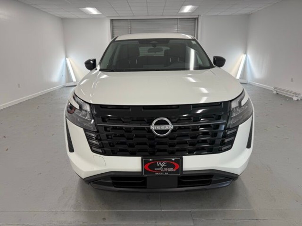 Glacier White 2026 Nissan Pathfinder S FWD 9-Speed Automatic 3.5L V6 DOHC 18" Painted Alloy Wheels, 3rd row seats: bench, 4-Wheel Disc Brakes, 6 Speakers, ABS brakes, Air Conditioning, Alloy wheels, AM/FM radio: SiriusXM w/360L, Auto High-beam Headlights, Automatic temperature control, Blind Spot Warning, Brake assist, Bumpers: body-color, Cloth Seating Surfaces, Delay-off headlights, Driver door bin, Driver vanity mirror, Dual front impact airbags, Dual front side impact airbags, Electronic Stability Control, Emergency communication system: NissanConnect Services, Four wheel independent suspension, Front anti-roll bar, Front Bucket Seats, Front Center Armrest, Front dual zone A/C, Front reading lights, Fully automatic headlights, Garage door transmitter: myQ Connected Garage, Illuminated entry, Knee airbag, Low tire pressure warning, NissanConnect featuring Apple CarPlay and Android Auto, Occupant sensing airbag, Outside temperature display, Overhead airbag, Overhead console, Panic alarm, Passenger door bin, Passenger vanity mirror, Power door mirrors, Power steering, Power windows, Radio data system, Radio: AM/FM Audio System with NissanConnect, Rear air conditioning, Rear anti-roll bar, Rear reading lights, Rear side impact airbag, Rear window defroster, Rear window wiper, Reclining 3rd row seat, Remote keyless entry, Security system, Speed control, Speed-sensing steering, Split folding rear seat, Spoiler, Steering wheel mounted audio controls, Tachometer, Telescoping steering wheel, Tilt steering wheel, Traction control, Trip computer, Variably intermittent wipers.