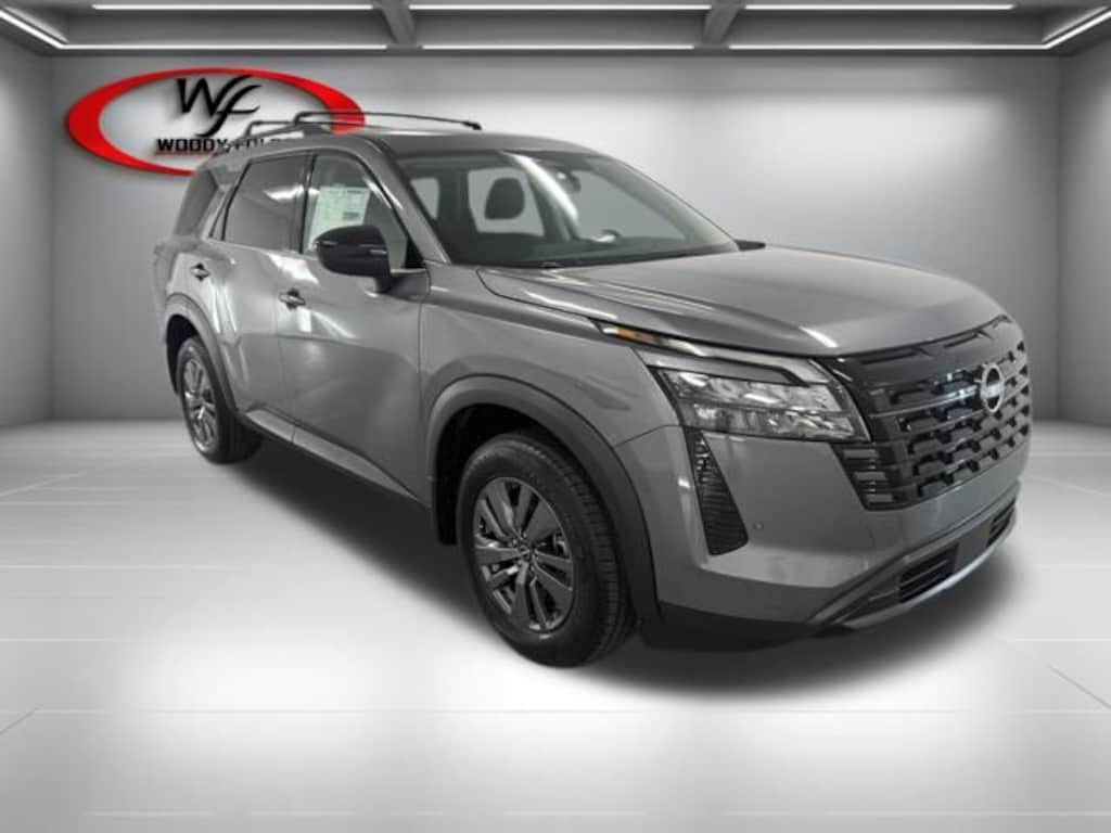 Gun Met 2026 Nissan Pathfinder SV FWD 9-Speed Automatic 3.5L V6 DOHC 18" Painted Alloy Wheels, 3rd row seats: bench, 4-Wheel Disc Brakes, 6 Speakers, ABS brakes, Air Conditioning, Alloy wheels, AM/FM radio: SiriusXM w/360L, Auto High-beam Headlights, Automatic temperature control, Brake assist, Bumpers: body-color, Cloth Seating Surfaces, Delay-off headlights, Driver door bin, Driver vanity mirror, Dual front impact airbags, Dual front side impact airbags, Electronic Stability Control, Emergency communication system: NissanConnect Services, Four wheel independent suspension, Front anti-roll bar, Front Bucket Seats, Front Center Armrest, Front dual zone A/C, Front reading lights, Fully automatic headlights, Garage door transmitter: myQ Connected Garage, Heated door mirrors, Heated Front Bucket Seats, Heated front seats, Illuminated entry, Knee airbag, Low tire pressure warning, NissanConnect featuring Apple CarPlay and Android Auto, Occupant sensing airbag, Outside temperature display, Overhead airbag, Overhead console, Panic alarm, Passenger door bin, Passenger vanity mirror, Power door mirrors, Power driver seat, Power Liftgate, Power steering, Power windows, Radio data system, Radio: AM/FM Audio System with NissanConnect, Rear air conditioning, Rear anti-roll bar, Rear reading lights, Rear seat center armrest, Rear side impact airbag, Rear window defroster, Rear window wiper, Reclining 3rd row seat, Remote keyless entry, Security system, Speed control, Speed-sensing steering, Split folding rear seat, Spoiler, Steering wheel mounted audio controls, Tachometer, Telescoping steering wheel, Tilt steering wheel, Traction control, Trip computer, Variably intermittent wipers.