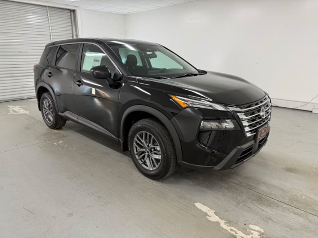 Super Black 2026 Nissan Rogue S FWD CVT with Xtronic 1.5L DOHC 17" Alloy Wheels, 4 Speakers, 4-Wheel Disc Brakes, ABS brakes, Air Conditioning, Alloy wheels, AM/FM radio: Sirius, Apple CarPlay/Android Auto, Auto High-beam Headlights, Blind Spot Warning, Brake assist, Bumpers: body-color, Cloth Seat Trim, Delay-off headlights, Driver door bin, Driver vanity mirror, Dual front impact airbags, Dual front side impact airbags, Electronic Stability Control, Four wheel independent suspension, Front anti-roll bar, Front Bucket Seats, Front Center Armrest, Front reading lights, Fully automatic headlights, Illuminated entry, Knee airbag, Low tire pressure warning, Occupant sensing airbag, Outside temperature display, Overhead airbag, Overhead console, Panic alarm, Passenger door bin, Passenger vanity mirror, Power door mirrors, Power steering, Power windows, Radio data system, Radio: AM/FM NissanConnect, Rear anti-roll bar, Rear seat center armrest, Rear side impact airbag, Rear window defroster, Rear window wiper, Remote keyless entry, Speed control, Speed-sensing steering, Speed-Sensitive Wipers, Split folding rear seat, Spoiler, Steering wheel mounted audio controls, Tachometer, Telescoping steering wheel, Tilt steering wheel, Traction control, Trip computer, Variably intermittent wipers.