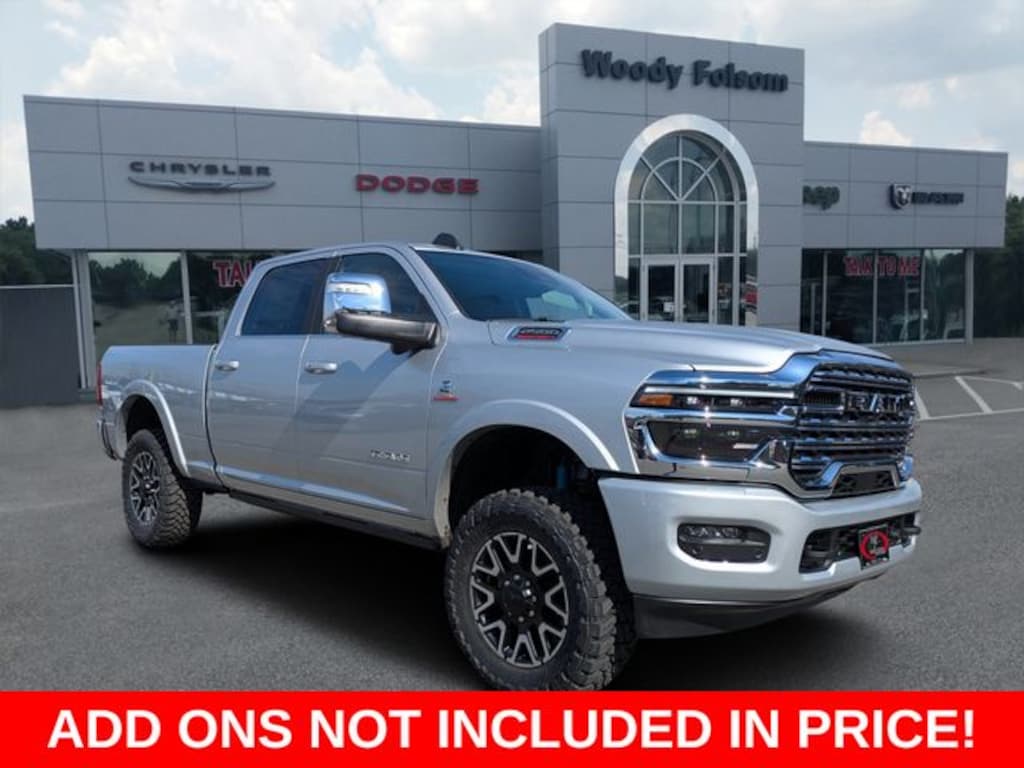 Local Home Delivery: If you buy a vehicle, over the phone, email, text. We will deliver the vehicle to your home or a place of your choosing. Woody Folsom Chrysler Dodge Jeep Ram Vidlia is excited to offer this fantastic 2026 Ram 2500 in Silver Zynith This vehicle has passed our comprehensive inspection and comes with the following Cold Weather Group (Engine Block Heater and MOPAR Winter Front Grille Cover), Longhorn Level 1 Equipment Group (Active Lane Management System, Adaptive Steering System, Anti-Spin Differential Rear Axle, Center Stop Lamp with Cargo View Camera, Digital Rearview Mirror, Drowsy Driver Detection, LED Bed Lighting, MOPAR Spray in Bedliner, MOPAR Trailer Camera Wiring with No Camera, Power Deployable Running Boards, Surround View Camera System, Traffic Sign Recognition, Trailer Reverse Guidance, and Trailer Tire Pressure Monitoring System), Off Road Package (Front Performance Tuned Shock Absorbers, Hill Descent Control, and Rear Performance Tuned Shock Absorbers), Quick Order Package 24K Longhorn (Front Seat Back Map Pockets, I/P Aluminum Litho Bezels with Real Wood #1, Longhorn Badge, Longhorn Instrument Cluster Theme 3, Luxury Front and Rear Floor Mats, Premium Door Trim Panel, Premium Filigree Leather Seats, Ventilated Front Seats, and Warm Chrome Key Fob), Tow-Mode Digital Rearview Mirror Package (Tow-Mode Camera (Wired)), 17 Speakers, 4-Wheel Disc Brakes, 5th Wheel/Gooseneck Towing Prep Group, ABS brakes, Adjustable pedals, Air Conditioning, Alloy wheels, AM/FM radio: SiriusXM with 360L, Apple CarPlay/Android Auto, Audio memory, Auto High-beam Headlights, Auto-dimming door mirrors, Auto-dimming Rear-View mirror, Automatic temperature control, Black Wheel Center Hub, Bodyside moldings, Brake assist, Bumpers: body-color, Compass, Dash Pass Thru Wire Circuits, Delay-off headlights, Driver door bin, Driver vanity mirror, Dual Alternators Rated At 480 Amps, Dual front impact airbags, Dual front side impact airbags, Electronic Stability Control, Front anti-roll bar, Front Bucket Seats, Front Center Armrest w/Storage, Front dual zone A/C, Front fog lights, Front License Plate Bracket, Front reading lights, Fully automatic headlights, Garage door transmitter, Genuine wood console insert, Genuine wood dashboard insert, Genuine wood door panel insert, harman/kardon® Speakers, Heated door mirrors, Heated front seats, Heated rear seats, Heated steering wheel, Illuminated entry, Instrument Panel Mounted Auxiliary Switches, Leather steering wheel, Low tire pressure warning, Memory seat, Navigation System, Occupant sensing airbag, Outside temperature display, Overhead airbag, Overhead console, Panic alarm, ParkView Rear Back-Up Camera, Passenger door bin, Passenger vanity mirror, Pedal memory, Pickup Box, Power door mirrors, Power driver seat, Power passenger seat, Power steering, Power Sunroof, Power windows, Radio data system, Radio: Uconnect 5 Nav with 14.4" Display, Rain sensing wipers, Rear anti-roll bar, Rear reading lights, Rear seat center armrest, Rear step bumper, Rear window defroster, Remote keyless entry, Security system, Speed control, Split folding rear seat, Steering wheel mounted audio controls, Tachometer, Tilt steering wheel, Traction control, Trip computer, Turn signal indicator mirrors, Ultra Premium Leather Seats, Variably intermittent wipers, Vendor Painted Cargo Box, Vendor Painted Cargo Box Tracking, Ventilated front seats, Voltmeter, and Wheels: 20" x 8.0" Diamond Cut Aluminum with Black Pt Pockets; Silver Zynith 2026 Ram 2500 Limited 4WD 8-Speed Automatic 6.7L I6 Price does not include tax, title, license, or administration fees. Price includes: $1000 - 2026 National Bonus Cash . Exp. 04/30/2026