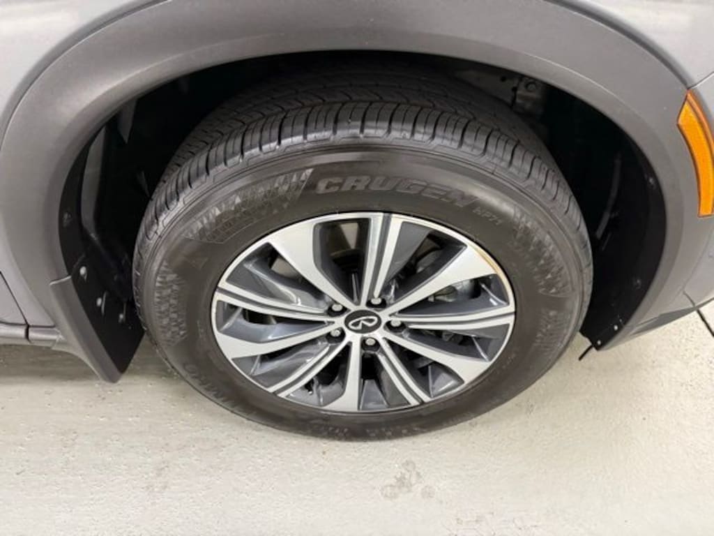 9-Speed Automatic 2.0L I4 Turbocharged DOHC 16V LEV3-ULEV50 268hp 3rd row seats: bench, 4-Wheel Disc Brakes, 9 Speakers, ABS brakes, Air Conditioning, Alloy wheels, AM/FM radio: SiriusXM, Anti-whiplash front head restraints, Apple CarPlay/Android Auto, Auto High-beam Headlights, Auto-dimming Rear-View mirror, Automatic temperature control, Blind Spot Warning, Brake assist, Bumpers: body-color, Delay-off headlights, Driver door bin, Driver vanity mirror, Dual front impact airbags, Dual front side impact airbags, Electronic Stability Control, Emergency communication system: INFINITI InTouch, Floor Mats w/Bench Seats on 3rd Row Tray, Four wheel independent suspension, Front anti-roll bar, Front Bucket Seats, Front Center Armrest, Front dual zone A/C, Front reading lights, Fully automatic headlights, Heated door mirrors, Heated Front Bucket Seats, Heated front seats, Heated steering wheel, Illuminated entry, Knee airbag, Leather Shift Knob, Leather steering wheel, Leather-Appointed Seating Surfaces, Literature Kit, Low tire pressure warning, Memory seat, Occupant sensing airbag, Outside temperature display, Overhead airbag, Overhead console, Panic alarm, Passenger door bin, Passenger vanity mirror, Power door mirrors, Power driver seat, Power Liftgate, Power moonroof, Power passenger seat, Power steering, Power windows, Radio data system, Radio: AM/FM Audio System, Rain sensing wipers, Rear air conditioning, Rear anti-roll bar, Rear Parking Sensors, Rear reading lights, Rear seat center armrest, Rear side impact airbag, Rear window defroster, Rear window wiper, Reclining 3rd row seat, Remote keyless entry, Security system, Speed control, Speed-sensing steering, Speed-Sensitive Wipers, Splash Guards, Split folding rear seat, Spoiler, Steering wheel mounted audio controls, Tachometer, Telescoping steering wheel, Tilt steering wheel, Traction control, Trip computer, Turn signal indicator mirrors, Variably intermittent wipers, Wheels: 18" x 8J Machined Aluminum Alloy.