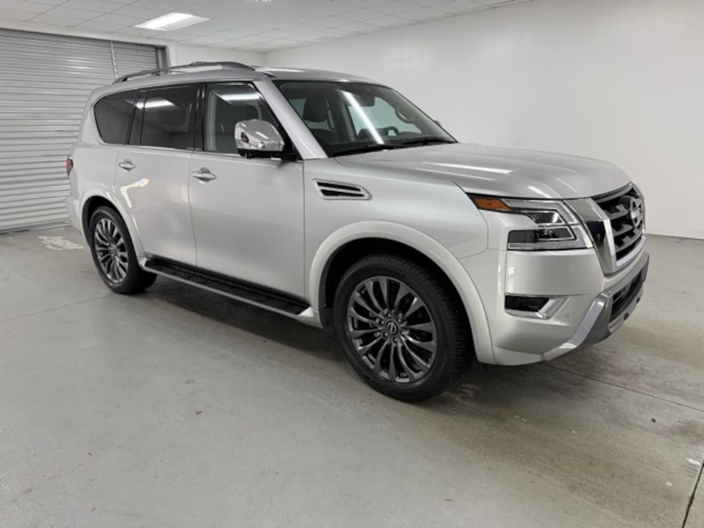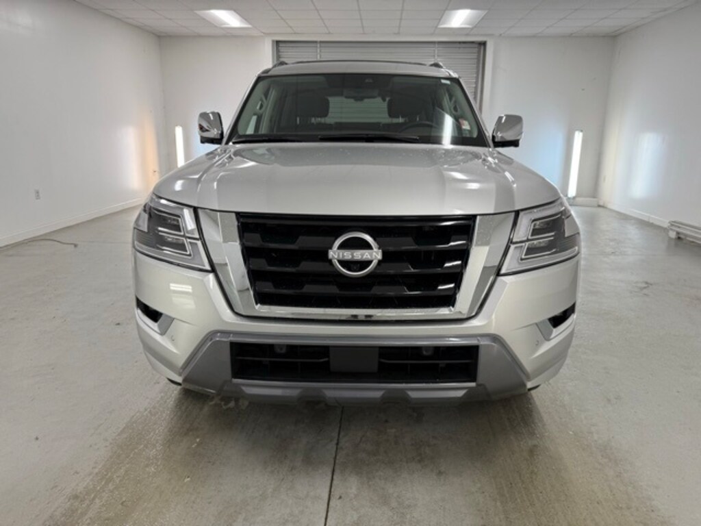 7-Speed Automatic 5.6L V8 DOHC 32V LEV3-ULEV125 400hp 13 Speakers, 2.937 Axle Ratio, 3rd row seats: split-bench, 4-Wheel Disc Brakes, ABS brakes, Air Conditioning, Alloy wheels, AM/FM radio: SiriusXM, Anti-whiplash front head restraints, Auto High-beam Headlights, Auto tilt-away steering wheel, Auto-dimming door mirrors, Auto-dimming Rear-View mirror, Auto-leveling suspension, Automatic temperature control, Brake assist, Bumpers: body-color, Climate-Controlled Front Bucket Seats, Delay-off headlights, Driver door bin, Driver vanity mirror, Dual front impact airbags, Dual front side impact airbags, Electronic Stability Control, Emergency communication system: NissanConnect Services, Exterior Parking Camera Rear, Four wheel independent suspension, Front anti-roll bar, Front Bucket Seats, Front Center Armrest, Front dual zone A/C, Front fog lights, Front reading lights, Fully automatic headlights, Garage door transmitter: HomeLink, Heated door mirrors, Heated front seats, Heated rear seats, Heated steering wheel, HVAC memory, Illuminated entry, Knee airbag, Leather Shift Knob, Leather steering wheel, Low tire pressure warning, Memory seat, Navigation System, Occupant sensing airbag, Outside temperature display, Overhead airbag, Overhead console, Panic alarm, Passenger door bin, Passenger vanity mirror, Power door mirrors, Power driver seat, Power Liftgate, Power moonroof, Power passenger seat, Power steering, Power windows, Quilted Leather Seat Trim, Radio: NissanConnect w/SiriusXM, Rain sensing wipers, Rear air conditioning, Rear anti-roll bar, Rear reading lights, Rear seat center armrest, Rear window defroster, Rear window wiper, Reclining 3rd row seat, Remote keyless entry, Security system, Speed control, Speed-sensing steering, Speed-Sensitive Wipers, Split folding rear seat, Spoiler, Steering wheel memory, Steering wheel mounted audio controls, Tachometer, Telescoping steering wheel, Tilt steering wheel, Traction control, Trip computer, Turn signal indicator mirrors, Variably intermittent wipers, Ventilated front seats, Voltmeter, Wheels: 22" x 8J Machine-Faced w/Tinted Clear Coat.